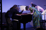 written 2013 Dis Un Il Im Ir uses electronics in two different ways. Firstly, the keys of the MIDI keyboard are mapped to a variety of software synthesizers. Each key works slightly differently. Some keys trigger multiple synthesizers and some trigger multiple notes on a single synthesizer. Secondly, two contact microphones are glued to six inch long pieces of wood. They are placed on the strings of the piano's top two octaves, muting those pitches. The microphones are fed into a Max/MSP patch that detects attacks then triggers synthesized events. Differing synthesis is produced according to which contact microphone is excited. Although the piece is entirely interactive there is no live audio processing on the piano or the flute. Flute samples, piano samples, and other synthetic sounds are triggered by the MIDI keyboard. Some keys trigger gestures of piano sounds that are performed slightly faster than would be possible on the real instrument. Such gestures are meant to push the already virtuosic performance into the super-human realm. The keyboardist is positioned directly to the left of the pianist so that she or he can perform the left hand from the piano part at certain moments. The title comes from a selection of negative prefixes. |
